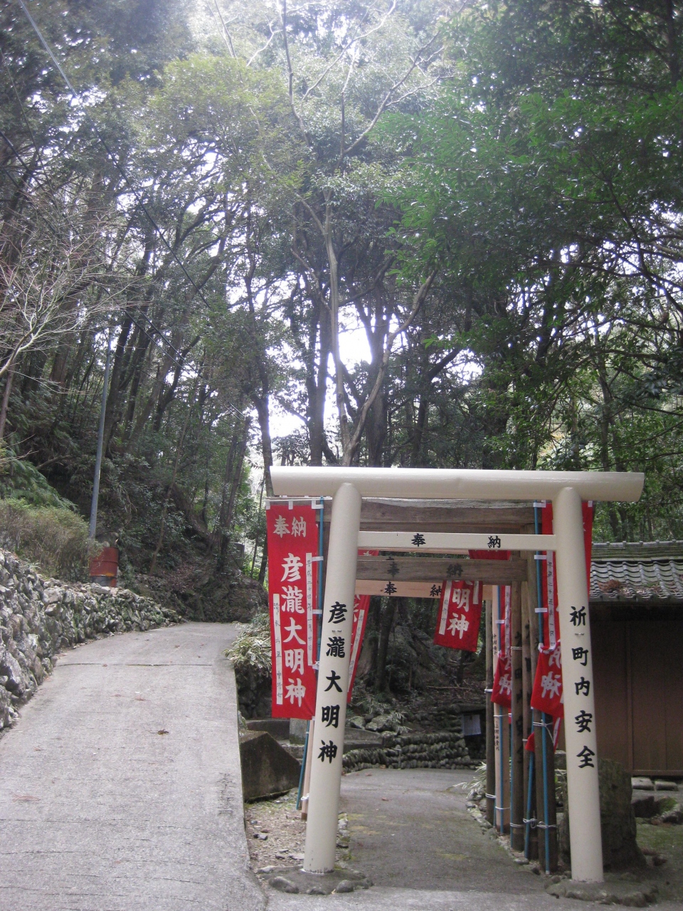 彦瀧大明神は(白蛇をご神体とする女性特有の病・安産の神様)、小さな滝をお祀りした神社は、鳥羽三女神の一社と言われています。