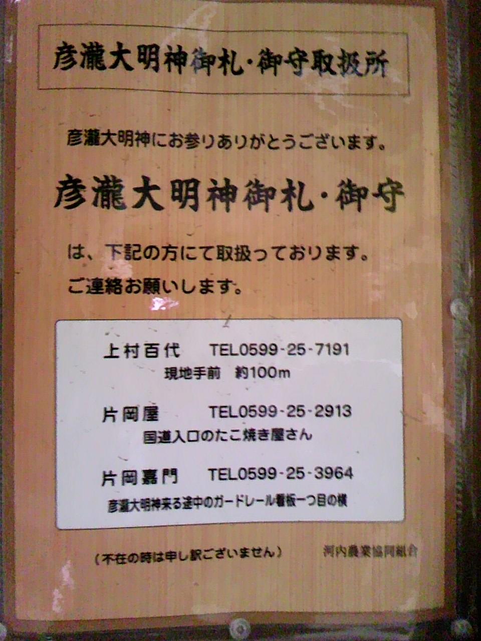 電車では近鉄志摩線(加茂駅)が最寄り・自家用車は、鳥羽駅から河内町方面(167号線)約15~20分走ると、右側に入る道(点滅信号)から彦瀧神社2kmの看板に沿って進むとT字路があり、右側に進むと河内神社を通過した先にあります。彦瀧大明神まで徒歩200mの看板の所で駐車して民家の路地を歩くと到着です。