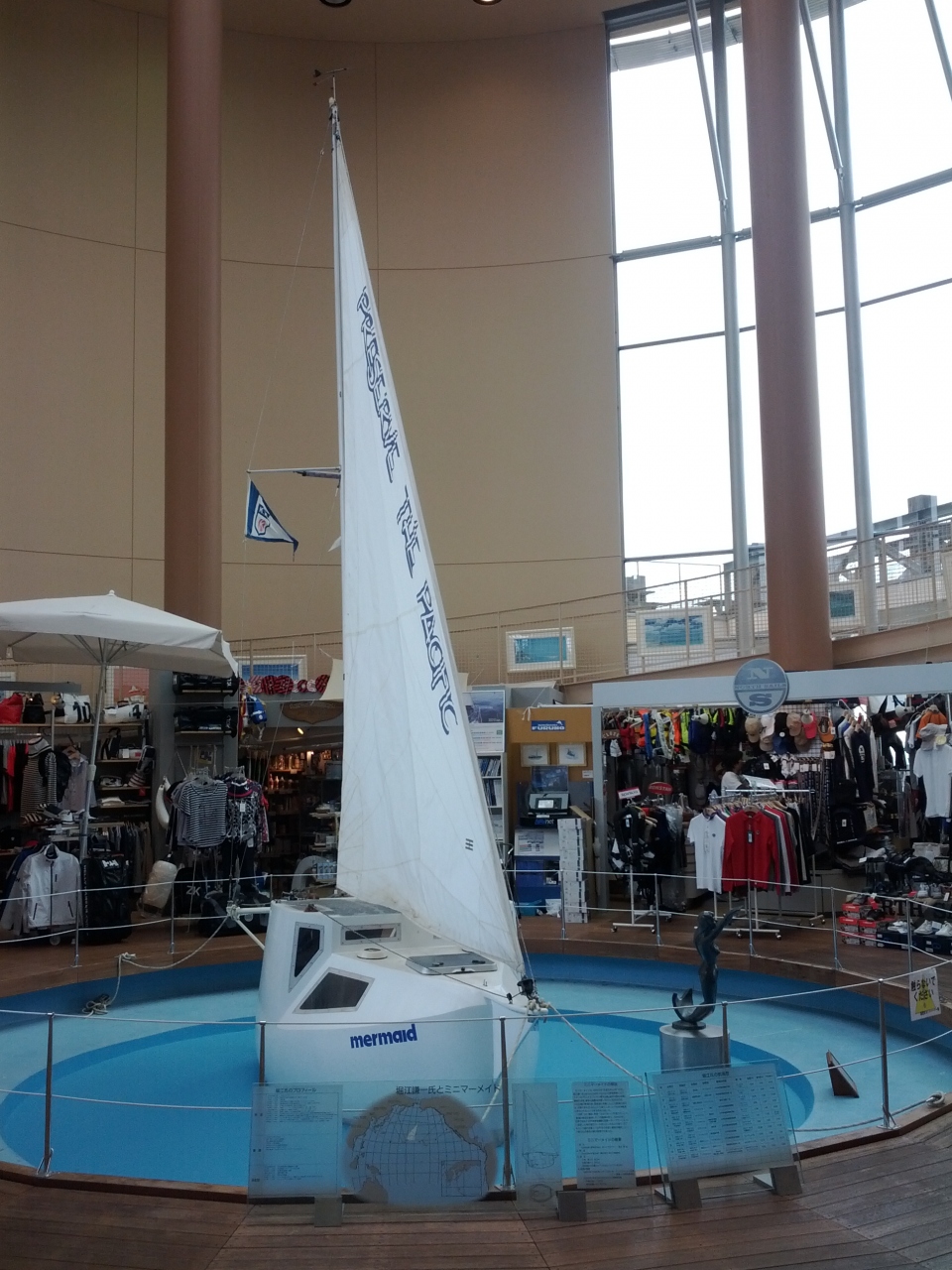 日本屈指のヨットハーバーにふさわしくお店も充実しています。マリンウェアやグッズがこれほどたくさん展示・販売されている施設は案外ないと思います。入り口と施設内に堀江謙一さんのマーメイド号が2艇保存されています。中の喫茶店でのランチも美味しかったですね。少し駅から遠くバスで移動しなくては行けないのが残念です。