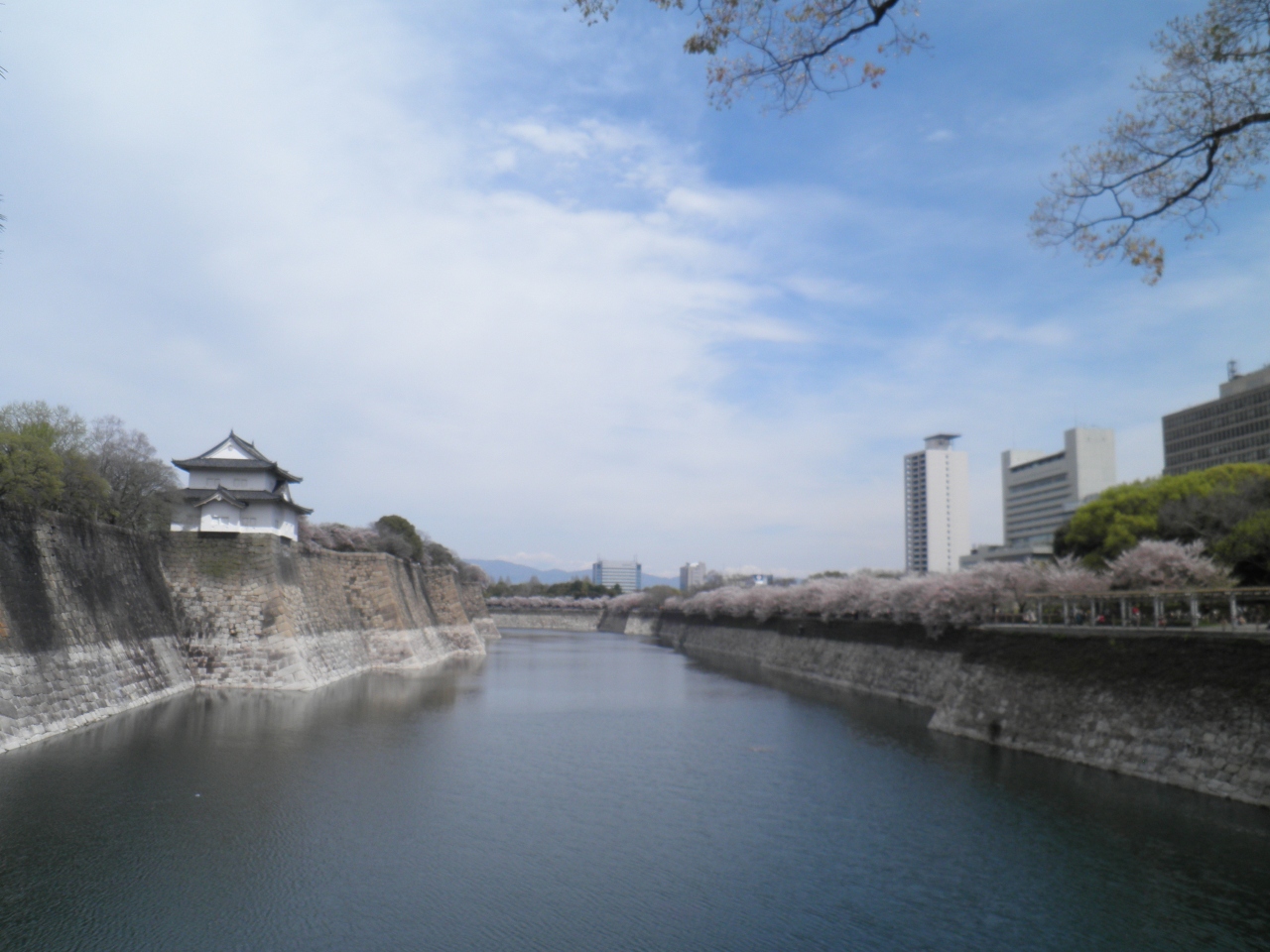 ちょうどサクラの咲くころ、なんばから地下鉄に乗って大阪城公園に花見にいきました。 花見客がたくさんいてにぎやかでした。 お堀の水にサクラが映えてきれいでした。 園内にはあまり売店がほとんどないし人が多くて並ばなけれならないので、食べ物や飲み物は持参したほうがいいかも。