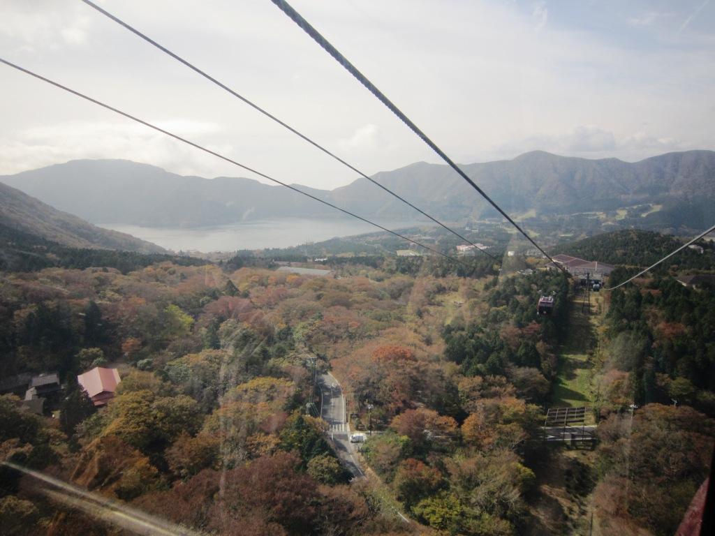 芦ノ湖畔の桃源台から大涌谷まで往復で乗りました。初めて乗ったのですが、駅舎は真新しく綺麗で、ロープウェーといいながらもスキー場ゴンドラと同じキャビン型で座るタイプです。往きは朝早かったので待ち時間もなくキャビン内も家族貸切で思う眼下の紅葉の景色を楽しみました。木々のない岩肌に白い湯煙がもくもく立ち昇る大涌谷もその全景を見ることができます。午前中の早い時間でしたが、眼下の大涌谷に続く道路はすでに大渋滞になっていましたので、行楽シーズンに大涌谷を訪れるにはロープウェーは良いアクセスです。