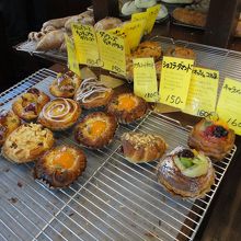 行った時間が遅かったのですが、目移りしそうなくらいおいしそうなパンが並んでいました。特にデニッシュ系がおいしかったです。