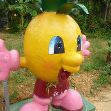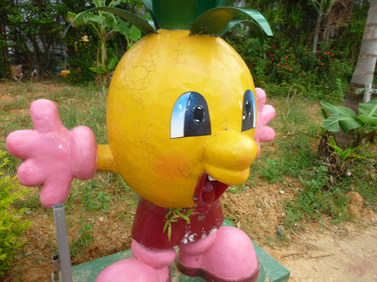 いろんなパイナップルが飾られた園内を
