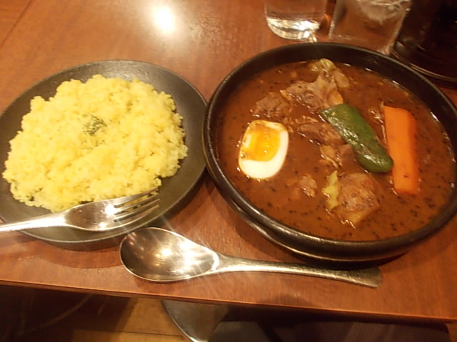 すすきの繁華街のど真ん中に立地するスープカレーのお店です。丁度すぐ近くにラーメン横丁がありますので、観光客の方にも判り易いお店だと思います。メニューも色々ありますが、定番はチキンカレーとのことでした。一応、ルーカレーのメニューも用意されていました。