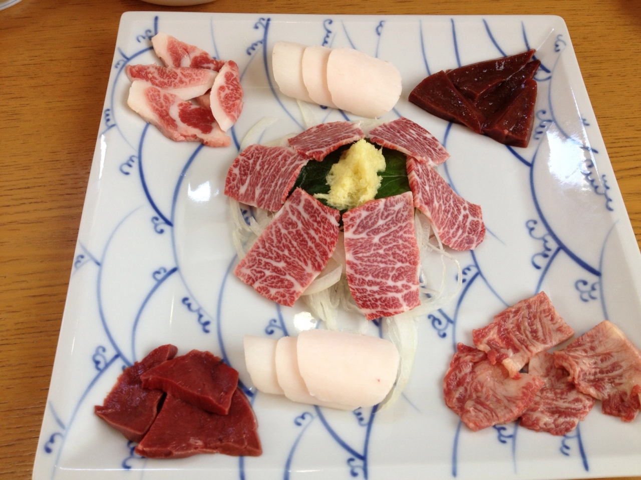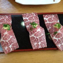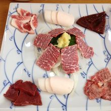 馬肉料理専門店というだけあって馬肉のお刺身など美味しかったです。刺身も赤身、たてがみ、心臓、レバー、あばらの部位など、普段は食べられないものが多くて楽しかったです。この他、もつの味噌煮込み、ホルモン醤油焼き、馬刺しのお寿司などを頂きました。