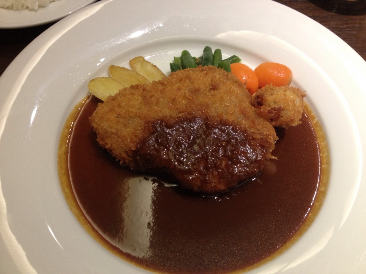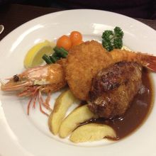 ビフカツのセットとクリームコロッケ・エビフライ・ハンバーグの3種盛りのセットを頼みました。ビフカツ本当に美味しくてビックリ。カリッとさくっとしたフライの中はレアなビーフステーキ。お肉が柔らかくて、ソースが苦みとコクのあるソースで美味しかったです。3種盛りの方も少しずつ頂けて大満足でした。