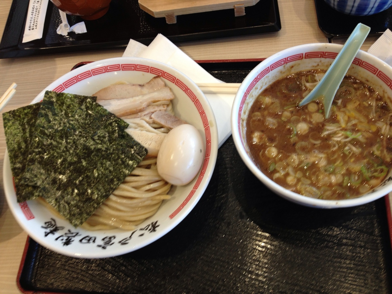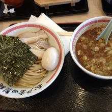 何を食べるか決めかねていたところ、この店の前では既にかなりの人が並んでいたのできっと美味しいに違いないと思い、特製つけ麺にしました。普通のつけ麺にチャーシュー、味玉、のりなどが多めに載った物でお腹いっぱいになります。