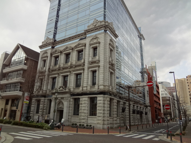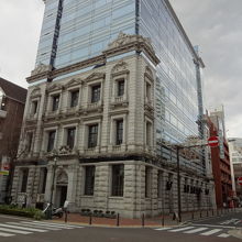 近代的なガラス張りの高層ビルなのですが、1階から3階までのファサードだけがクラシカルな外観となっています。