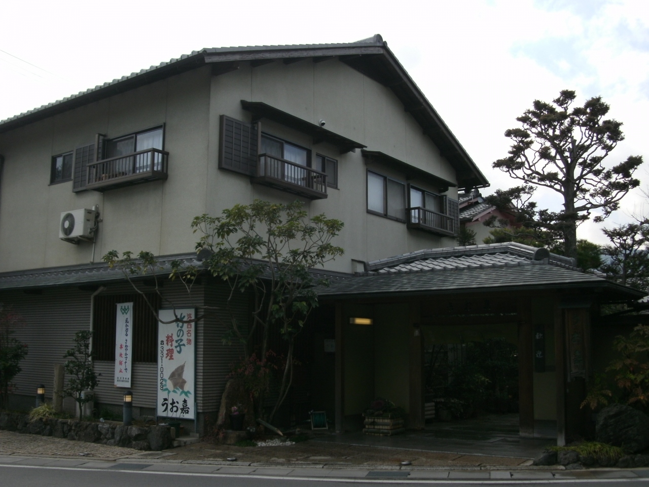 「うお嘉」さんは、府道10号線と733号線の交差点にある、創業明治5年の老舗です。まえまえから気になっていたお店でしたが、敷居が高そうで自分から訪問することはありませんでした。今回、たまたまお昼に招待されることがあり、願いがかないました。頂いたのは、松花堂スタイルのお弁当で、見事な塗りの箱の中に、器に盛られた取肴、御造り、焚合せ、 酢の物、などが入っているほか、揚げ物やお吸い物がついていました。どれも、丁寧に作られており、味は勿論、板前さんの手のかけようが判るものでした。時節がら、名物の竹の子が無かったのが残念でしたが、食事の内容は勿論、座敷の雰囲気、スタッフの応対など、総てにおいて満足する料理屋さんでした。