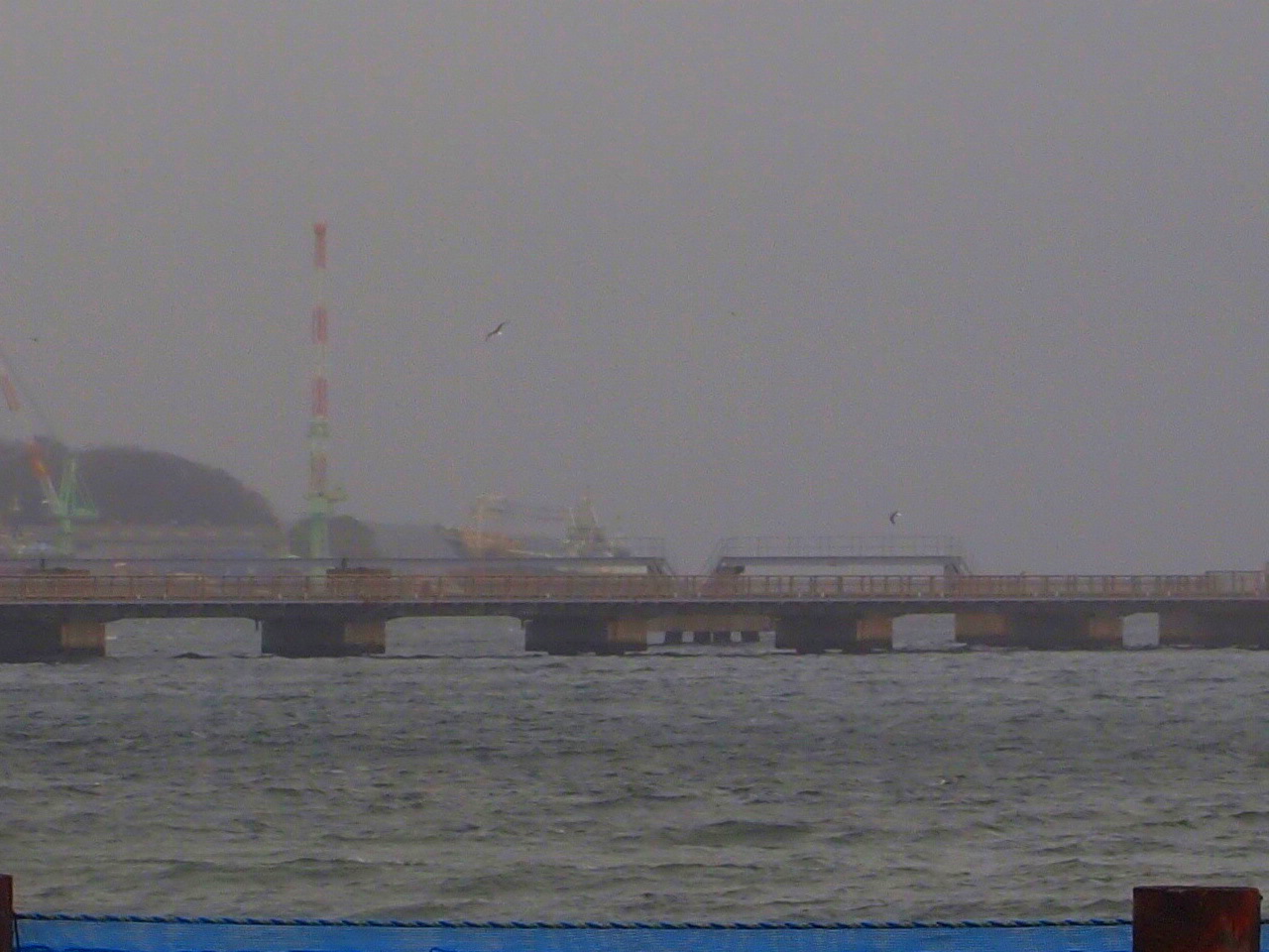 北条海岸に見えるのが館山港多目的観光桟橋です。2010年に完成したまだ新しいきれいな桟橋です。海へまっすぐ伸びていて、約500mあるそうです。大型客船が発着出来るようになっています。