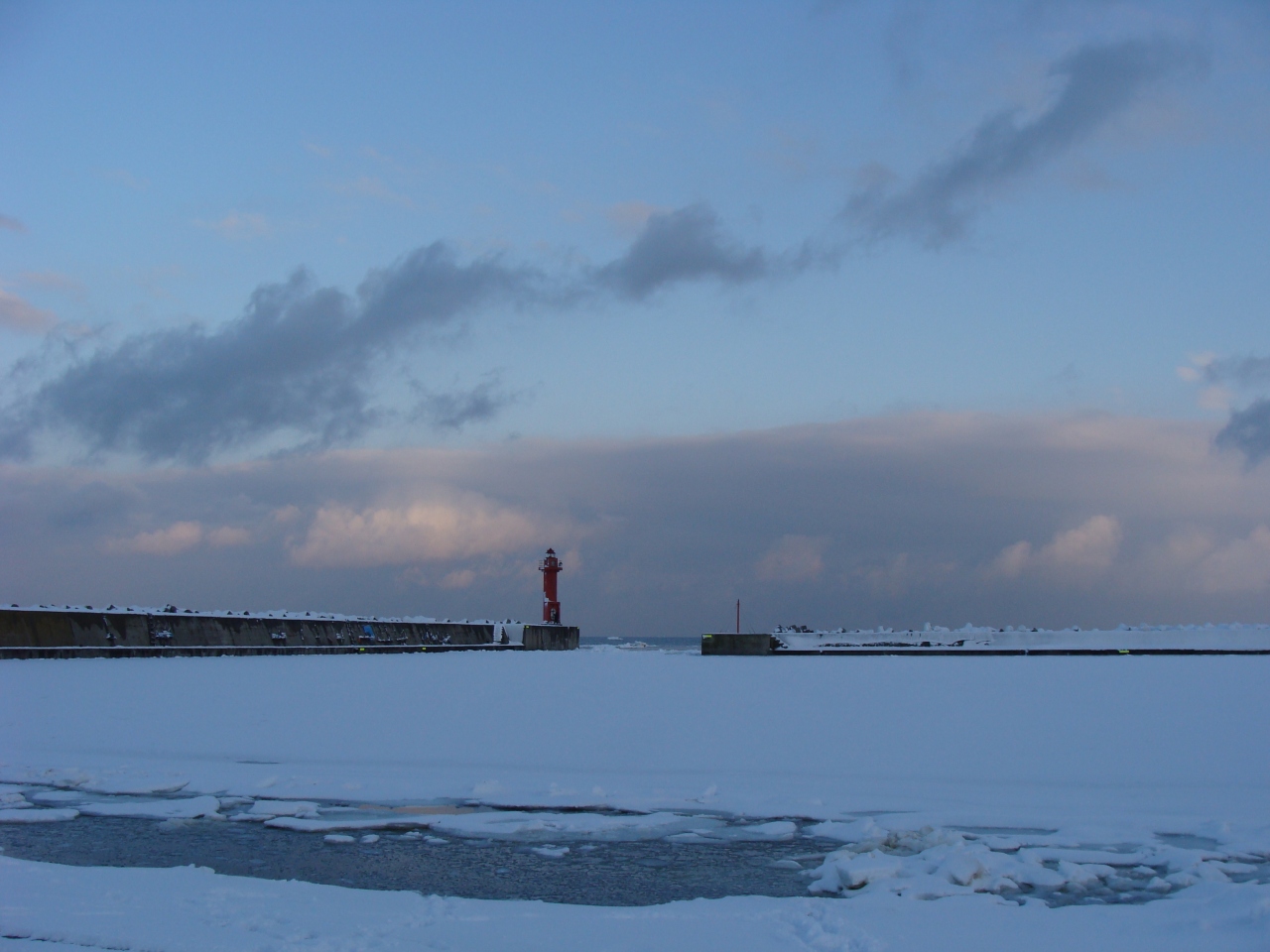 網走の道の駅を過ぎて斜里町のほうに向かう網走海岸沿いに赤い小さな灯台があって、そこから望む流氷が大好きです。一枚の水墨画のような光景です。灯台もかわいらしくて、歩いていけますよ。結構観光客も来ていて写真撮影をしていました。