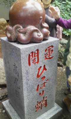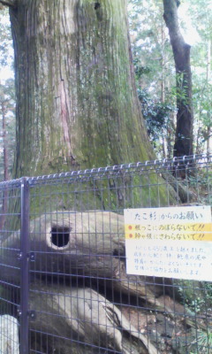 高尾山を登っていく途中にあり、ちょっとした人の列ができていました。皆がひっぱり蛸の頭をなでて行くので、頭がちょっとはげてました。すぐ隣にタコ杉があり、樹齢450年だそうです。高尾山のパワースポット的存在です。