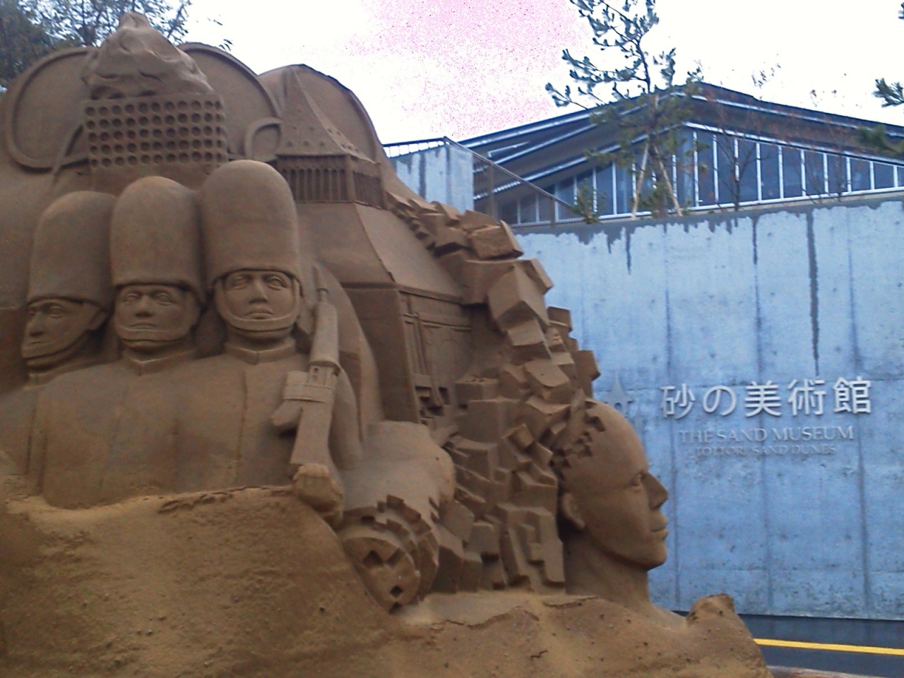 鳥取砂丘のすぐそばにある砂の彫刻を展示している美術館。以前はテントの中にあったようだが建物が建てられて天気が悪くても良くなったし、エレベーターもあって上からも見下ろすことができるし、車いすやベビーカーも大丈夫になったようだ。砂の彫刻は毎年テーマを決めて砂丘の砂で作られる。予想以上に素晴らしい。中を説明しながら案内してくれるので聞きながら回るとよくわかる。またここを見るためにだけにでも行きたいところである。