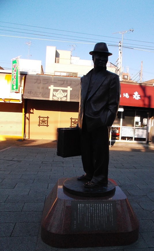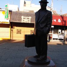 有名な『男はつらいよ』の映画の主人公、寅さんの銅像です。