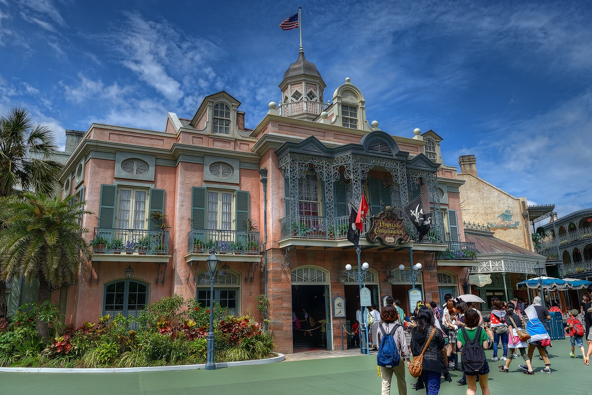 日中でも60分を超えることはなく、混雑の少ないアトラクションです。海賊の世界ということで、暗く、骸骨なんかも普通に出てきたりするので、少し子供には怖いかもしれません...