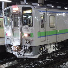 この電車は冬でも多分100キロ以上の速度で走りますから、特に冬の場合はバス等のアクセスよりは確実に早く札幌に到着します。