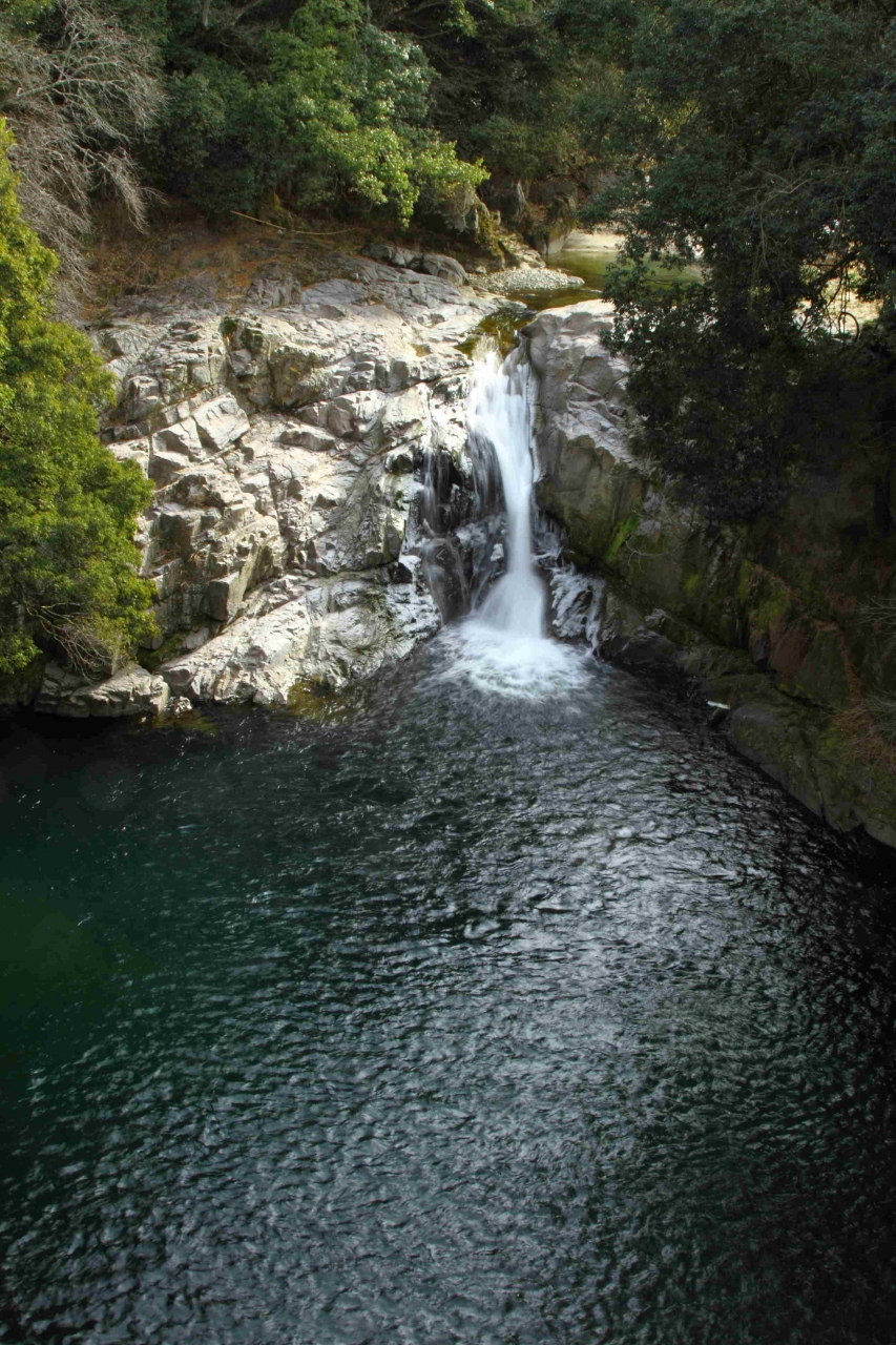 大きな滝です。冬に行きました。ところどころに「飛沫氷」がキラキラ。曇り空でしたが、晴れたらもっと輝くかも。橋の上からは、滝の正面がみえます。滝の上に降りる道があり、そこからは流れ落ちる滝の背後を鑑賞できます。「飛沫氷」を見るなら、滝の背後がお勧め。