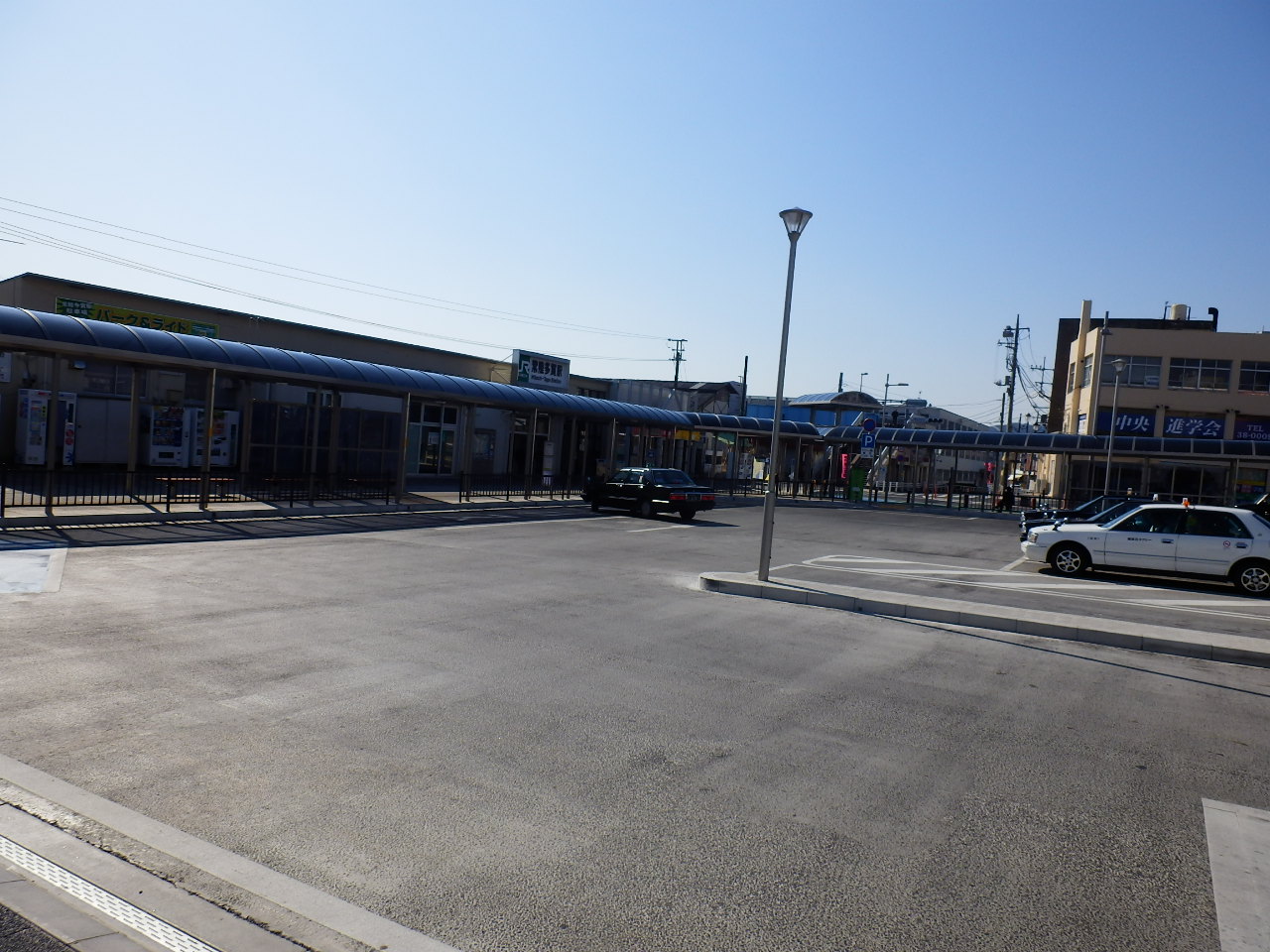駅前は綺麗に整備されていて、広いロータリーがあり、駅からまっすぐの道路が市街地に続いていました。