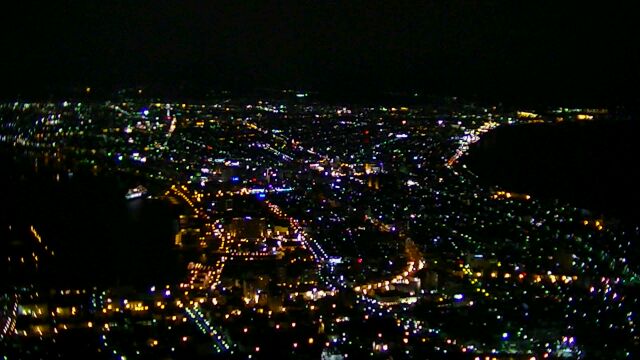 函館駅前のどんぶり横丁で、てんこ盛りの海鮮丼をいただいた後、函館山のふもとにある教会や洋食屋さんを覗いたりしながら函館山ロープーウェイ乗り場へ。この時期は空気が澄んでいて、しかも当日は雲一つ無い晴天とあって乗り場は大混雑でした。大型のロープーウェイで山頂へ、階段を昇り展望台へ・・・圧巻でした。神戸、長崎、香港と夜景は見てきましたが、これほど綺麗な夜景は初めてでした。函館湾と日本海を挟した地形にある函館の街は地図の輪郭そのままに夜の帳に浮かび上がります。右手に目をやると、下北半島沖合にイカ釣り船の灯りも点って、あぁ北の地に来ているのだと実感させられました。