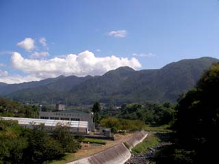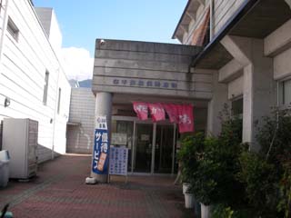 恵林寺から国道140号線を北に進み、笛吹川を渡る手前でバイパスから右に分かれる旧道に入り、橋を渡ると甲州市から元は牧丘町だった山梨市に入ります。川の少し上流に山梨市営温泉花かげの湯の立派な建物がありました。営業開始の少し前に着いて、玄関の前の椅子に座っていると、中に入ってロビーの椅子で待つように言われて、10時になって待っていた地元の人が受付を済ませた後で、この日から有効になった温泉博士10月号を見せると、料金700円が無料になりました。