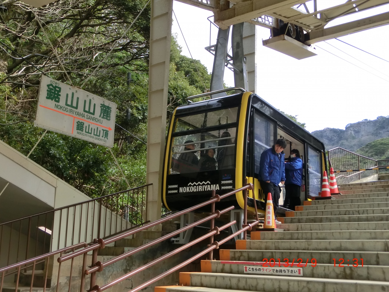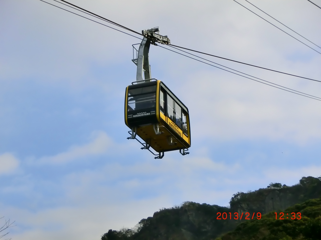 スイス製の広窓ゴンドラ、赤い【ちどり】と黄色い【かもめ】が運行。JAF会員割引で大人往復810円。切符は硬券で【ときめきホルダー】にしてくれる(¥500)。山頂食堂のオムライス、美味しそう。鋸山には車で登れ無料駐車場もありますが、素晴らしい車窓を見ながらのロープウェー、利用する価値高いと思います。