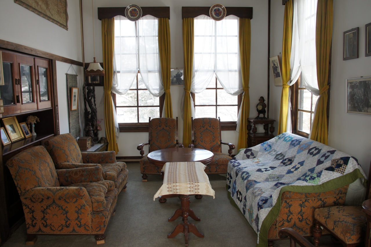 旧日新館は、旧制横手中学校の英語教師として赴任した米人宣教師アメリカ人チャールス・C・チャンプリンの住居として建てられたもの。地元の大工が日本建築に馴染めなくて困っていた氏のために、バルコニーとかも絵を頼りに建てたのだそうです。