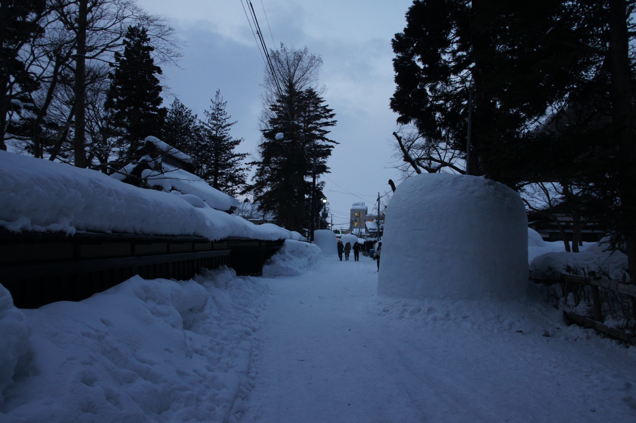 横手は、江戸時代も、秋田では大館と並んで一国一城令の特例として支城が置かれた城下町。武家屋敷跡は、市街中心部から横手川を渡った先ですが、長い塀をめぐらすお屋敷があったり、その名残を強く残すエリアです。かまくらもここから始まって、二葉町へと広がって行ったと聞きました。かまくらの灯りも、二葉町が電球であるのに対して、ここはろうそく。雰囲気がちょっと違います。