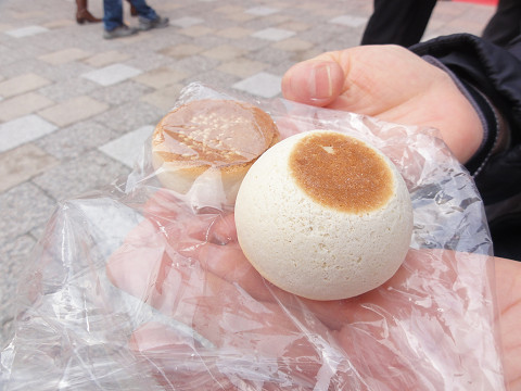 一〇香と書いて「いっこっこう」と言うそうです。でも店名は「いちまるこう」です。新地中華街のランタンフェスティバルに出店してました。白と黒の2種類の一〇香がありましたがありましたが、黒は普通のお饅頭、白が空洞のお饅頭でした。お饅頭なのにカリッとした歯ごたえは新鮮でしたが、すぐ食べ終わるのでちょっと物足りない感じでした。