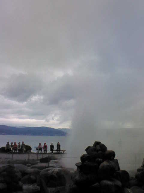 1日に5,6回熱水が吹き上がる仕掛けとなっており、大量の湯煙と一緒に高さ数メートル位まで勢いよく噴きあがるので、わりと迫力があります。