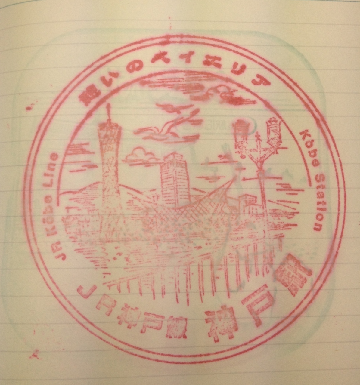 神戸駅のスタンプには、「憩いのベイエリア」と刻印されています。