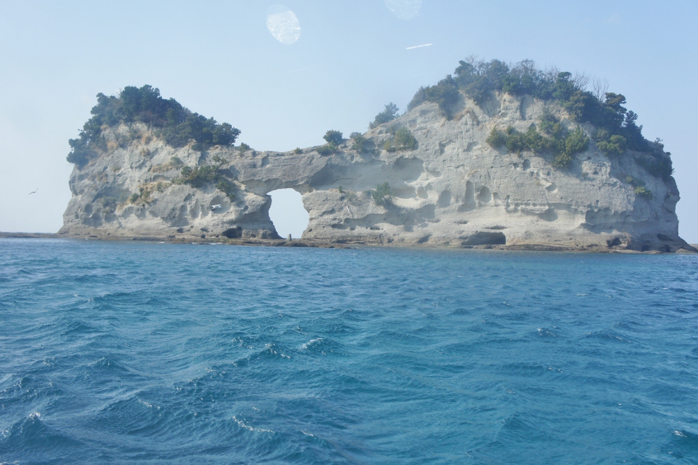 夕景の名所として も知られる「円月島」を見に行って来ました!円の中に夕日が沈むシーンが有名なんだとか...。波の浸食によって、将来は伊勢の「夫婦岩」になるのかな~と思いつつ見学しました。残念ながら、訪れたのは昼間でしたが、白浜の景勝地の1つというだけあって、良い眺めです。