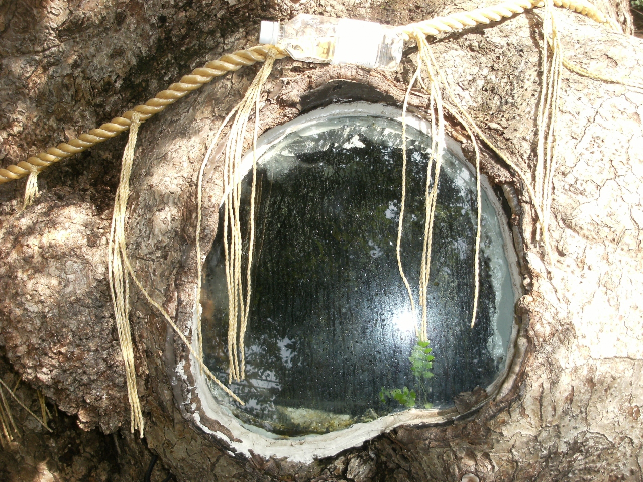 特に右側の木の内部から出てきたという石が置いてあり それを取り出したあとの大きな穴も はしごがかかっているので 登って見ることが出来ます。