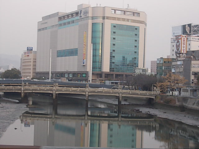 この橋は近代的な雰囲気の広がる広島駅界隈の中に忘れ去られたような風情で佇む、対象ロマンを髣髴とさせてくれる橋で、1920年代に架けられていることからも解るように、原爆の被害も受けている橋です。橋柱の一部が爆風によりずれていたりする箇所が現存していたりしますが、最近までは橋と平行して水管橋があって、爆風にも耐えて市内に水を送り続けていました。2007年に現役としての使命を終えて、現在ではモニュメントとしてその一部が橋の袂に展示されています。