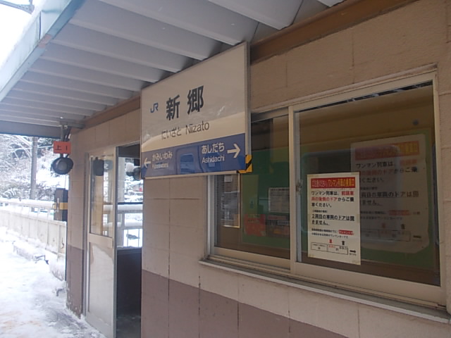 岡山県域の最北西部、鳥取県境の程近い場所にある駅ですが、立地的には新見市内の一駅となっています。この駅はマニアックな見所が多く、新郷駅の歌を刻んだ碑や、駅開設30周年記念碑など、なかなか旅情をそそられるローカル駅です。待合所に展示されていた地元の子供の絵なども、なかなか温かみが感じられて良かったです。