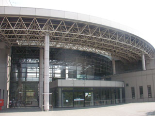磐梯熱海駅で降りて、線路沿いに郡山方面に歩いていくと、線路の下を通るバイパスがあり、その先に進むと湯貯のタンクがあり広い駐車場の先の円形の変わった形の建物の郡山ユラックス熱海に10分ほどで着きました。
