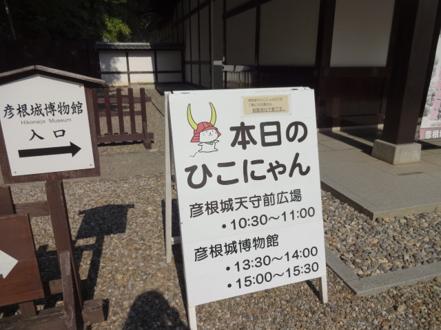 ひこにゃんはいつもいる訳ではなく、登場する曜日と時間が決まっているので、インターネットで調べてから行くと良いでしょう。ひこにゃんはお城の周りをうろうろと歩いていて一緒に記念撮影等できるのかと思っていたら違いました。係りの人に連れられ制限エリア内に現れ、触る事は禁止されています。ひこにゃんのエリアの周りに人垣ができ、ひこにゃんがポーズをとる度にバシャバシャとカメラのシャッター音がします。アイドルの撮影会のようでした。。。