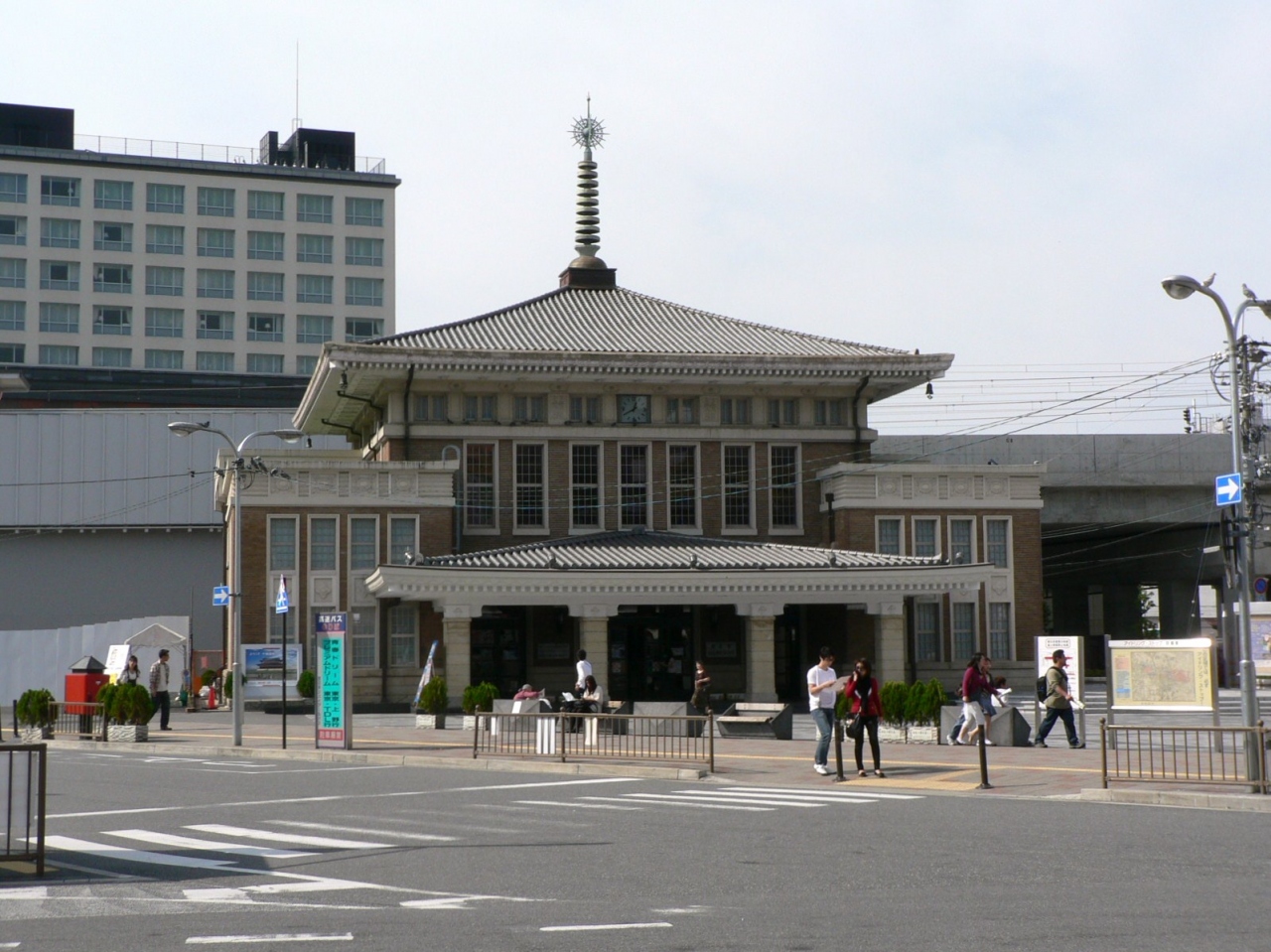 JR奈良駅前には1934年から2003年まで使われていた2代目駅舎が保存され2009年7月より奈良市総合観光案内所として利用されている。経済産業省から「近代化産業遺構」に指定されている、奈良らしい寺院を連想する方形屋根に相輪(そうりん)を持つ和洋折衷様式の建物だ。吹き抜けの中央に巨大な朱塗りの4本の柱が建っている。これは平城宮跡の平城遷都1300年祭で人気を集めた第1次大極殿正殿の復元の際に作られた、高さ5.3m、直径0.7mのものと同じ柱とのことだ。奈良の見所を紹介する観光ビデオが上映され、インターネットによる観光情報検索コーナーもある。