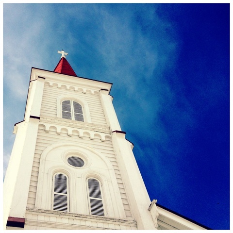 赤い屋根と白い壁と青空のコントラストがとても美しい教会だった。