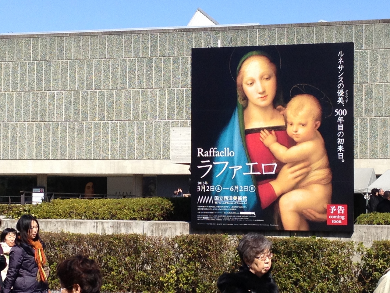 常設展示も素晴らしいです。しかし、2013年3月2日(土)~6月2日(日)は、ルネサンスを代表する画家ラファエロ展です。混雑必至ですね。フィレンツェ、パラティーナ美術館の「大公の聖母」が見られるそうです。さすが「国立西洋美術館」ですね。