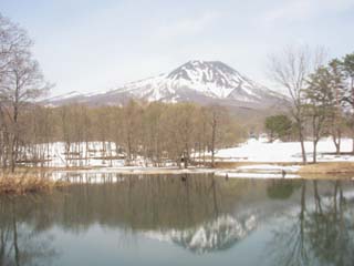 岩木山の八合目からカーブの続く津軽岩木スカイラインを下って、近くの湯段温泉に向かいます。途中に岩木山が良く見える場所があり、さっきまでいた山頂が高く見えています。湯段温泉は、集落の中に旅館があって特に温泉街はないところで、駐車場のあるゆだんの宿に車を停めて、玄関を入って声をかけると、奥から主人が出てきて、フロントで料金350円を払います。
