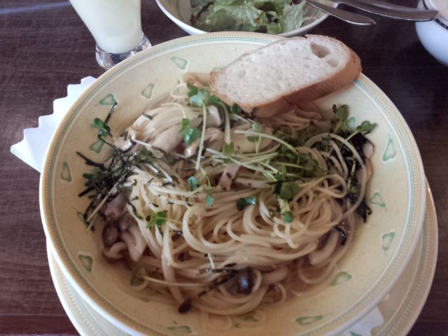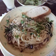 ランチでは、パスタ、サラダ、ドリンクがセットになったものが1,000円でした。
