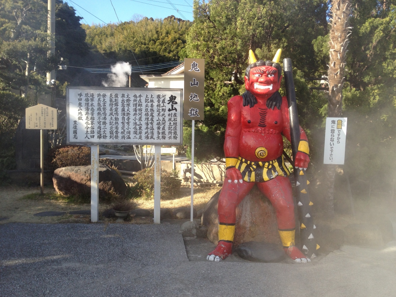 8つの地獄のなかの一つです。温泉を利用してワニを飼育しているそうで、別名ワニ地獄とも呼ばれているそうです。大きなワニがたくさんいました。みんな温泉につかっていて全く動きませんでした。肝心の地獄のほうは、とにかく蒸気がすごくてさすが鬼山!といった感じです。