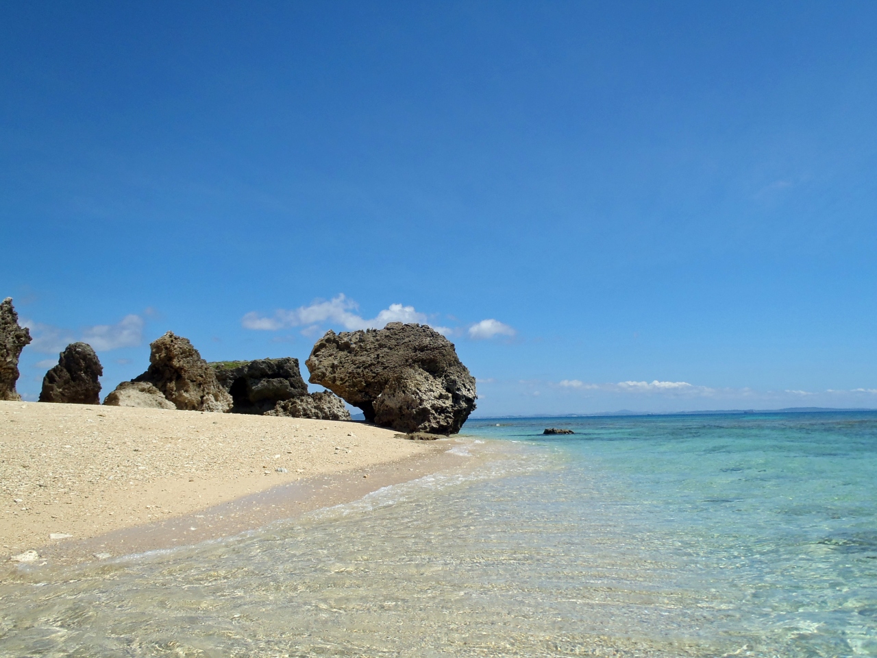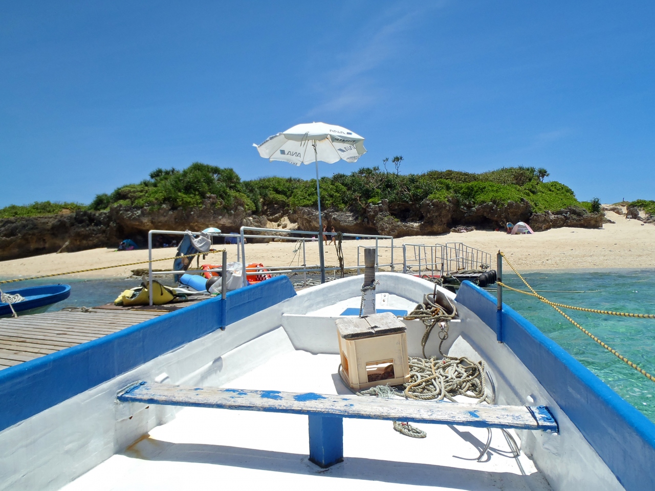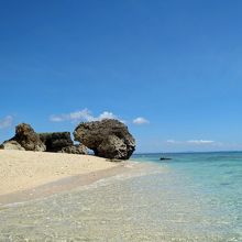 きれいな白砂のビーチがある小さな無人島で,知念辺りからも海上に白砂が横たわっている様子が見えます。