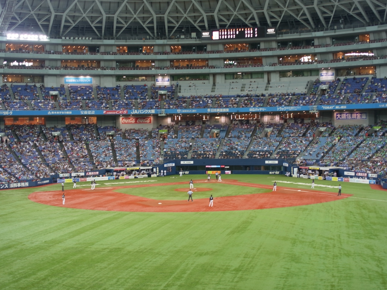 オリックス・バファローズの本拠地球場です。大阪ではタイガースの方が人気ということもあっていつも空いています。場内アナウンスやイニング間のアトラクションはメジャー風、演出は楽しいのですがいかんせん殺風景な球場です。レストランも福岡や札幌と比べると寂しい感じがします。