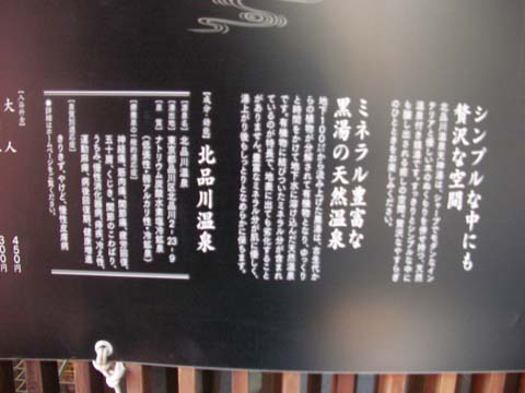 浴室に入ると手前にカランが並んでいて、白湯の広い湯舟がにバイブラやジェットがあり、さらに奥の扉の先が、濃い茶色の黒湯の湯舟になっています。黒湯は中温ですが、寒い中歩いていたので最初は熱く感じましたが、慣れると中温ですべすべする感じがします。黒湯で良く暖まってから外に出て、元来た旧東海道を通って八ツ山橋を渡って品川駅に戻りました。