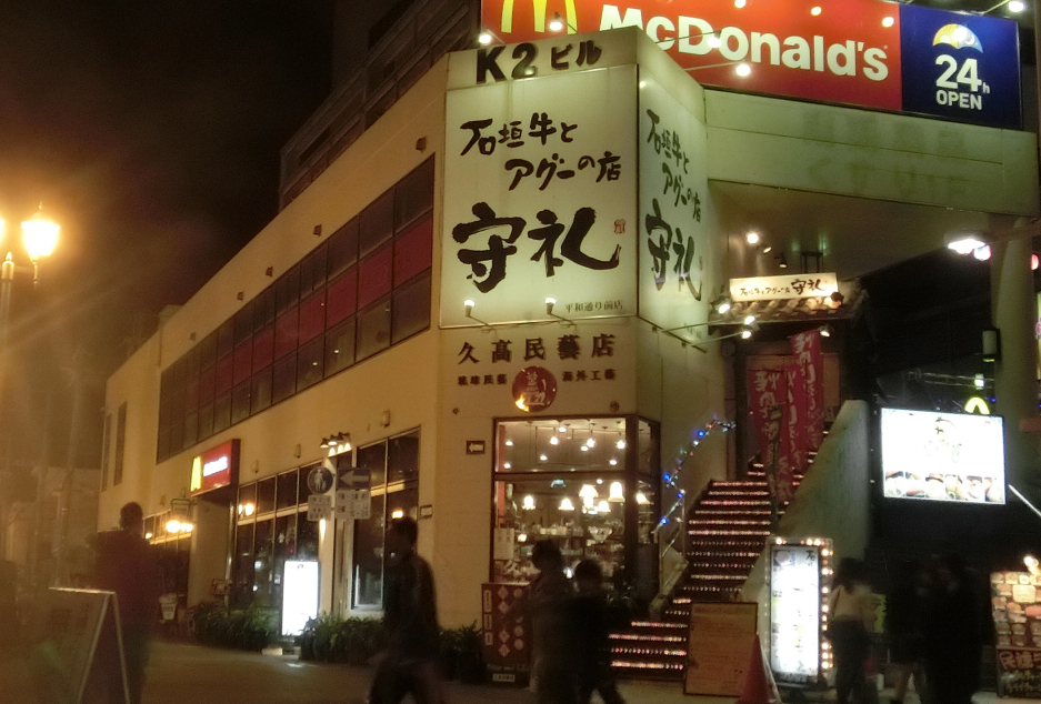 ゆいレール牧志駅から国際通りを西に行き、三越の隣にあります。石垣牛は沖縄サミットのときにステーキで出された肉です。希少性が高いのですが、守礼では5000円前後で頂けます。また、コースもお値打ちです。アグー豚と石垣牛の両方食べられるコースもあります。