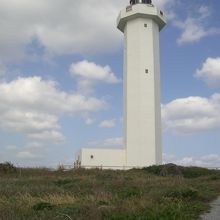 駐車場から少し歩くと、先っぽに白い灯台があります。