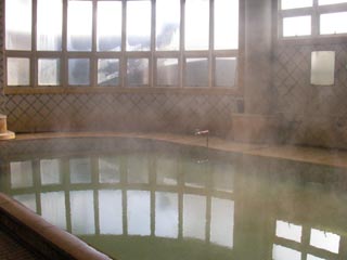 今まで入った共同浴場に比べて、内部は天井が高く広いので、ゆっくり温泉に浸かれます。湯加減は少し熱めですが、窓から適度に風が入って、湯煙が流れていく様を見ていると、今回の放浪の旅で求めていた極楽にたどり着いた気分です。浴槽の脇で涼みながら、昼下がりの温泉に何度も入ってくつろぎます。