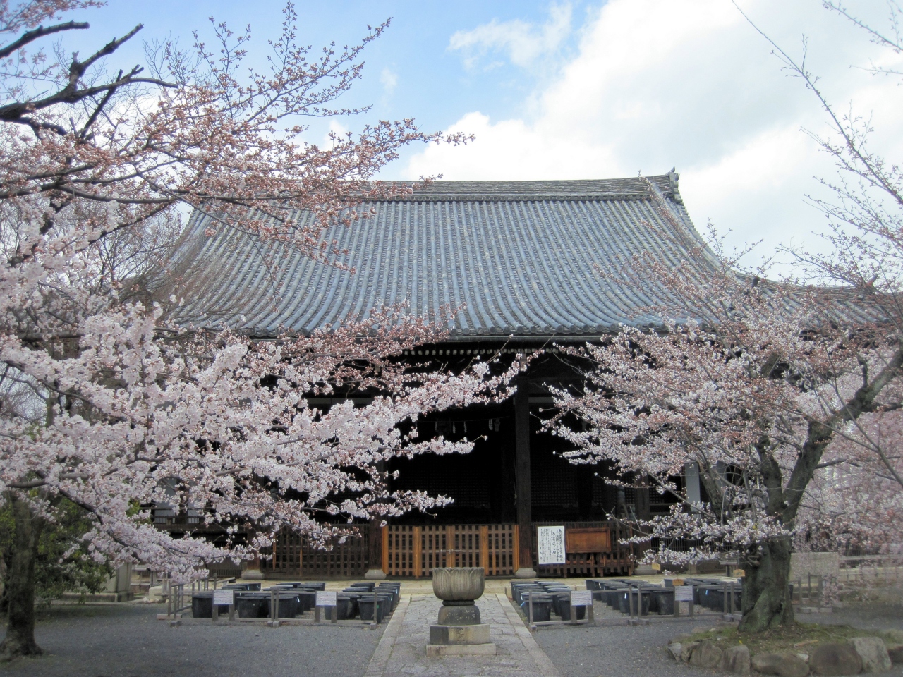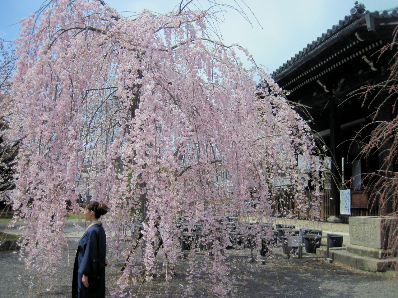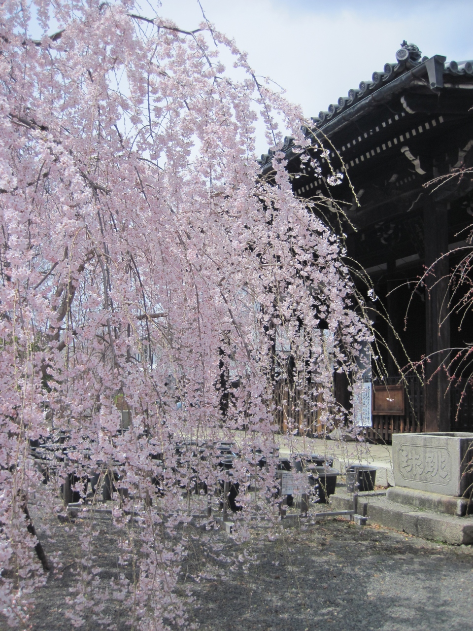 北野天満宮からちょっと南に下ったところにあります。京都の人にもあまり知られていないお寺ですが、隠れた桜の名所です。本堂の横にあるしだれ桜は、小ぶりですが、きれいです。それと豊臣側石田三成とともに関ヶ原を闘った島左近のお墓もあります。