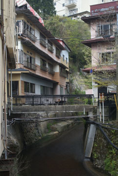 小松地獄に行った後は、筋湯温泉に近い無料駐車場に車を停めて、温泉街に下っていきます。川を渡ると立派な作りの共同浴場のうたせ湯があり、そのすぐ近くに露天風呂の岩ん湯、その先の路地に薬師湯があります。露天風呂は、この日女性専用で、薬師湯は、中が狭かったので、最初のうたせ湯に向かいます。
